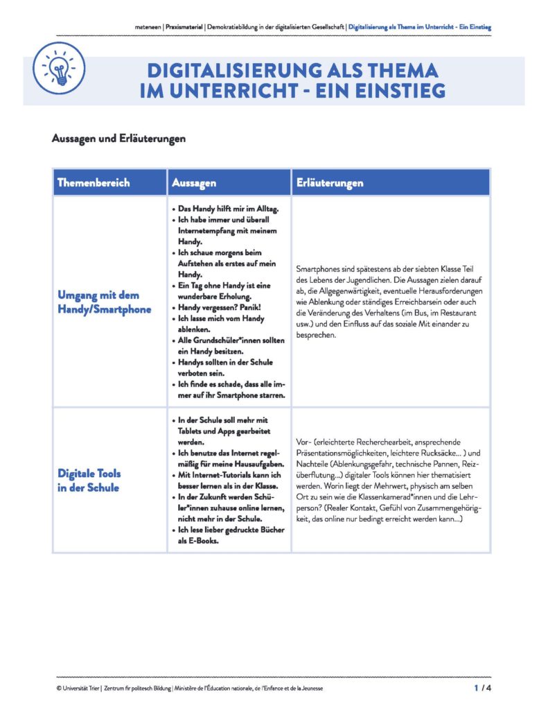 Lors de la création du matériel, nous nous sommes basés sur les compétences et les objectifs d’apprentissage du manuel scolaire. Vous pouvez utiliser le manuel de manière flexible et interdisciplinaire. Les parties 1 et 2 sont utilisables séparément ou peuvent être utilisées dans leur ensemble. Les fiches de travail peuvent également être utilisées séparément.
