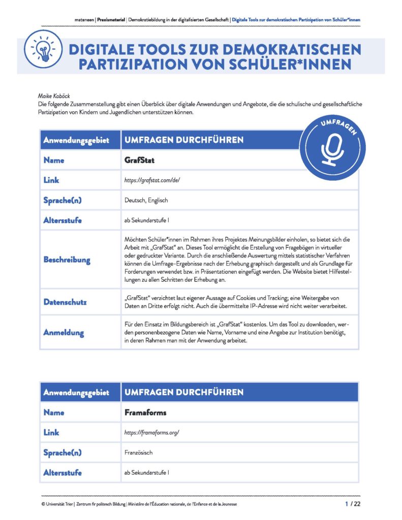 Cette édition traite des défis et des opportunités de la démocratie à l’école à l’ère numérique. Elle propose des approches pédagogiques et des outils concrets pour renforcer la participation des élèves grâce aux médias et technologies numériques (pages 17-23).