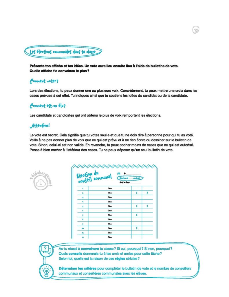 Ce petit guide s’adresse aux personnes politiques et aux candidat·e·s dans leurs échanges avec les enfants et les jeunes. Les éducateur·trice·s, les enseignant·e·s, les employé·e·s de l’administration communale ou d’autres responsables peuvent le distribuer aux personnes politiques au préalable.