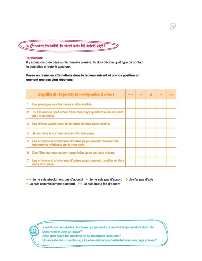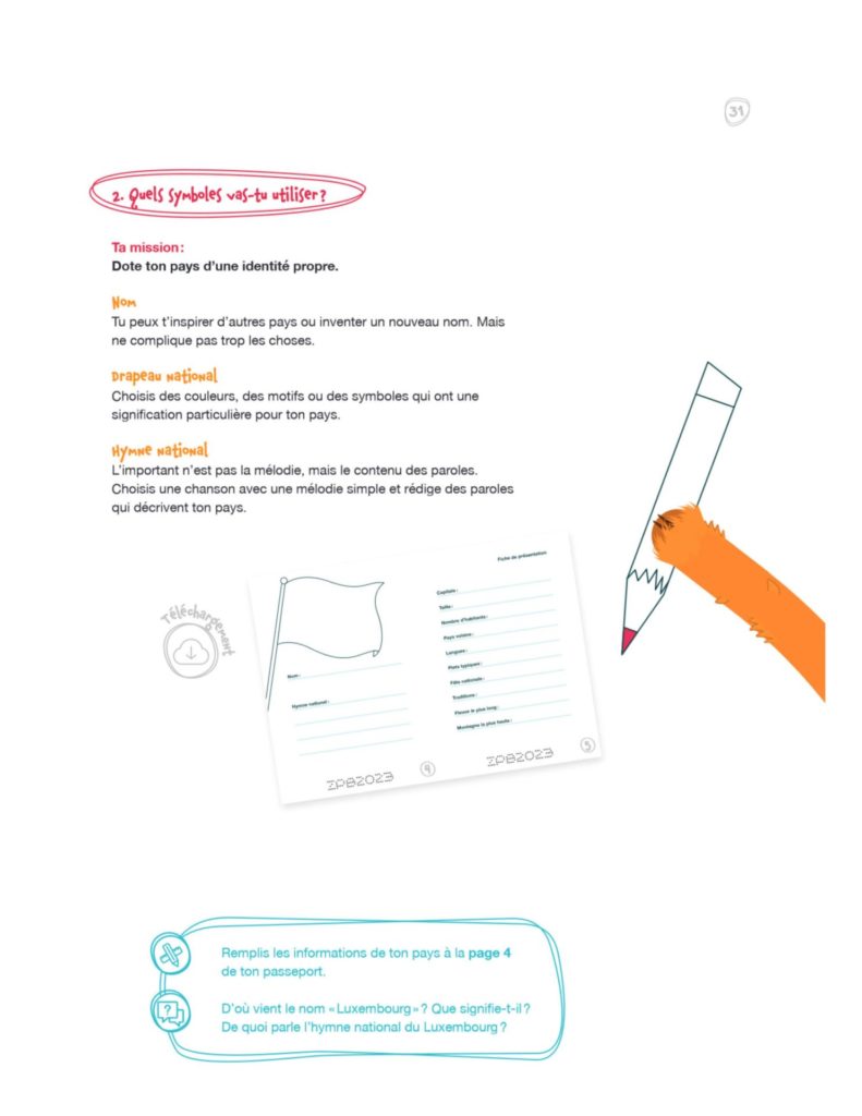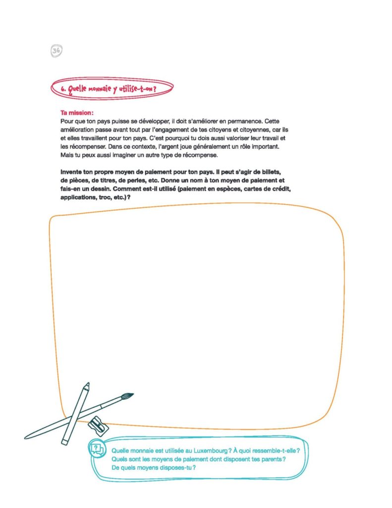 Les élèves découvrent qui vit au Luxembourg, quelles langues y sont parlées et comment fonctionnent les institutions politiques. À travers des exercices créatifs, ils imaginent leur propre pays et établissent des liens avec la réalité luxembourgeoise – une manière ludique de mieux comprendre la diversité, la démocratie et les défis de la cohabitation.