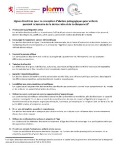 Ces lignes directrices proposent un cadre pour concevoir des ateliers pédagogiques stimulants et inclusifs durant la Semaine de la démocratie et de la citoyenneté. Elles visent à encourager la participation active des enfants et des jeunes, à renforcer leurs compétences citoyennes et à promouvoir le respect des valeurs démocratiques. Conçues pour soutenir la pensée critique et la diversité, elles offrent aux enseignant·e·s des repères concrets pour animer des activités interactives et adaptées à l’âge.