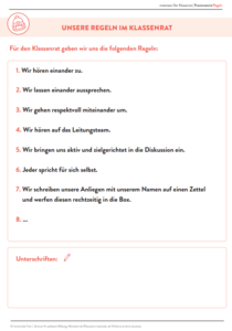 Zeitvorgabe: ca. 1 Schulstunde (nutzbar während der Durchführung des Klassenrats)
